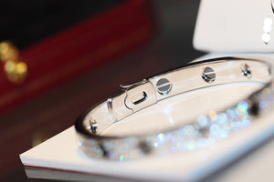 The closure is designed with two functional screws placed on either side of the bracelet: you will need help to open or close it.