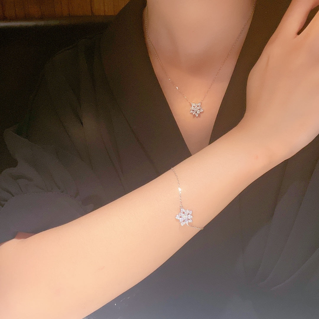 - Necklaces Chain: 42 cm, Diamond: 26 stones, 0.16 carat