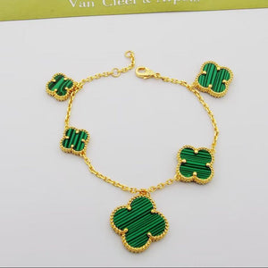 18K Magic Alhambra Five Malachite Motifs Clover Bracelet