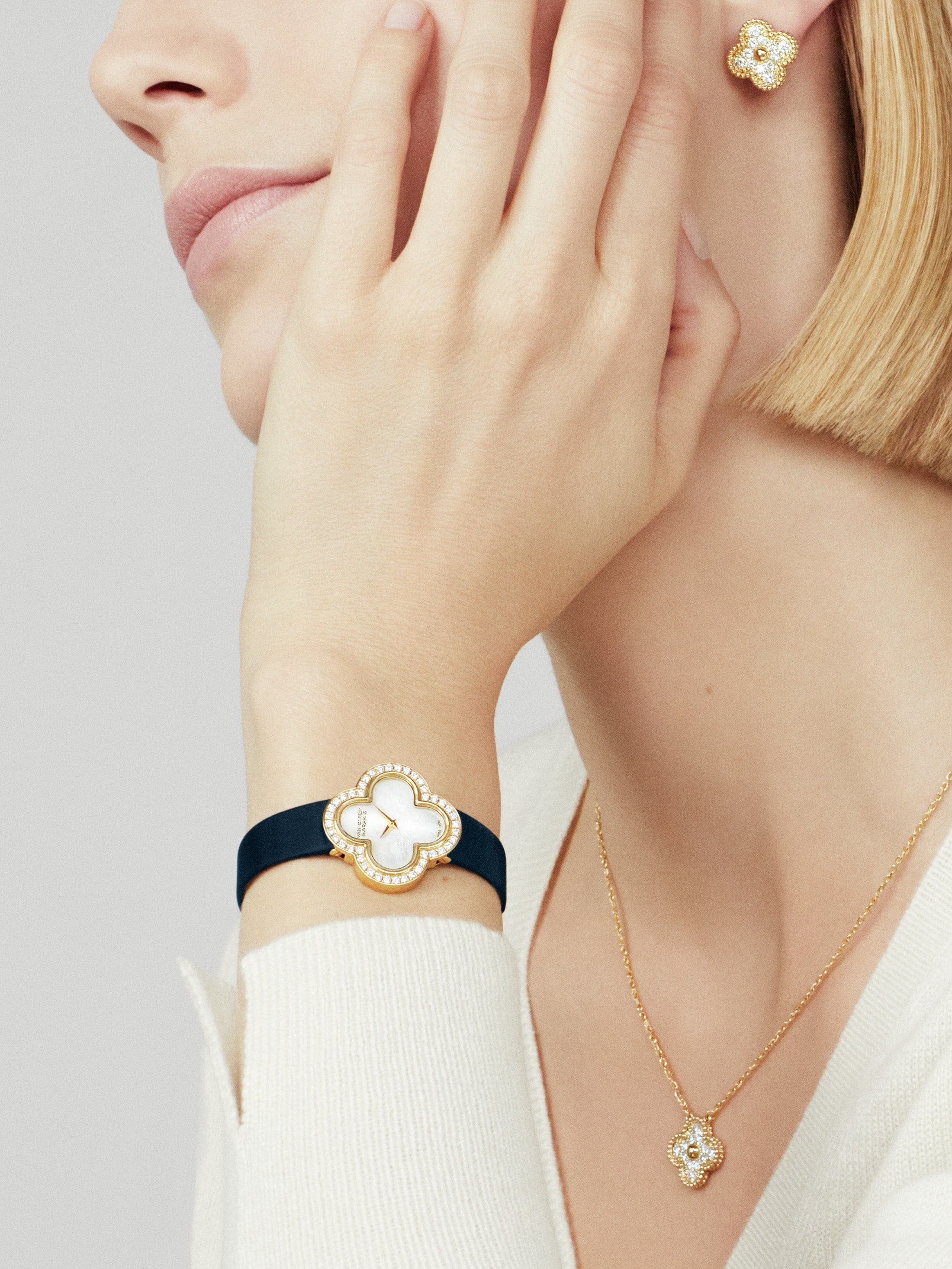 18K Sweet Alhambra Diamond Clover Necklace