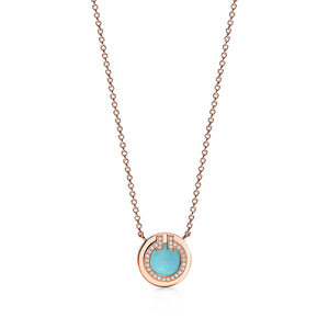 18K T Diamond & Turquoise Circle Pendant Necklace