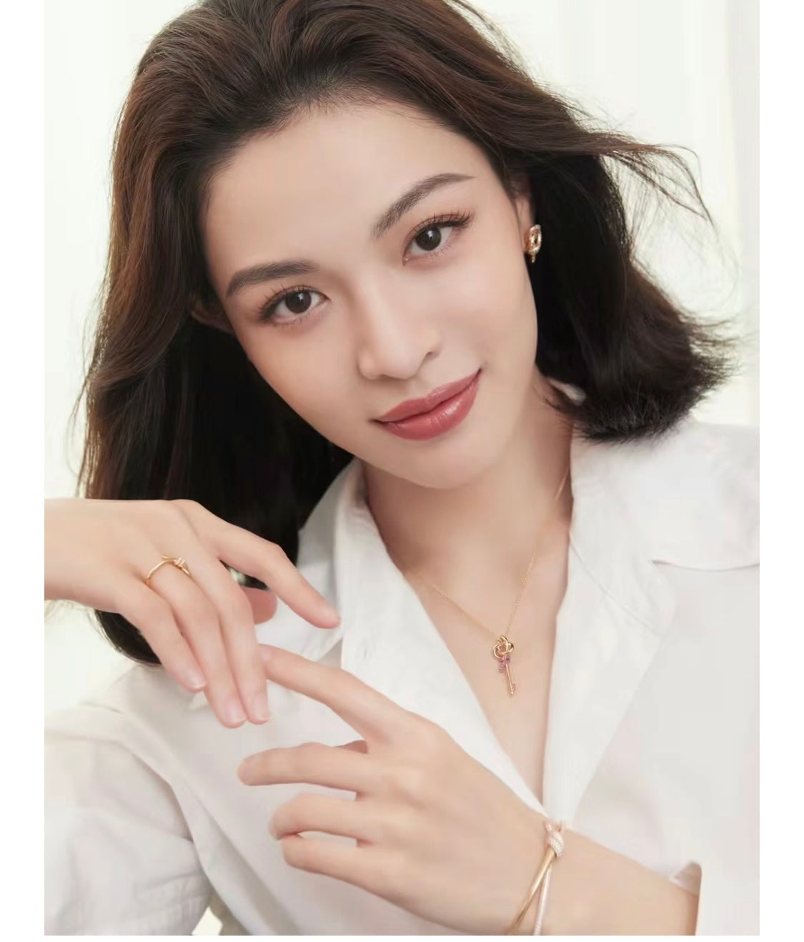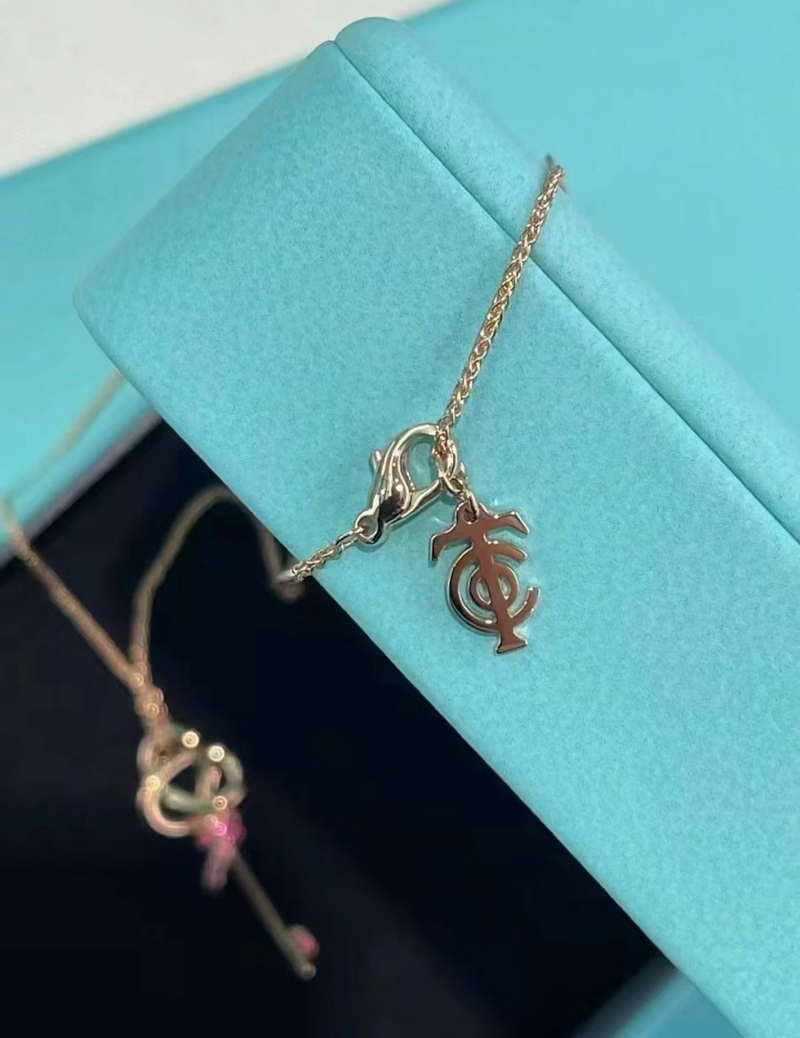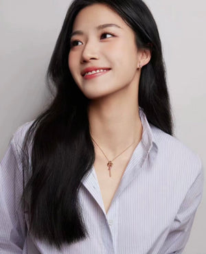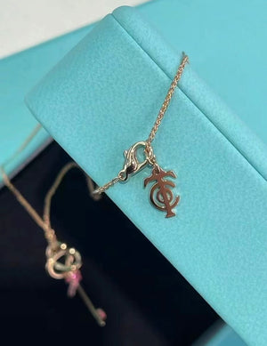 18K T Keys Woven Pink Diamonds Medium Necklace