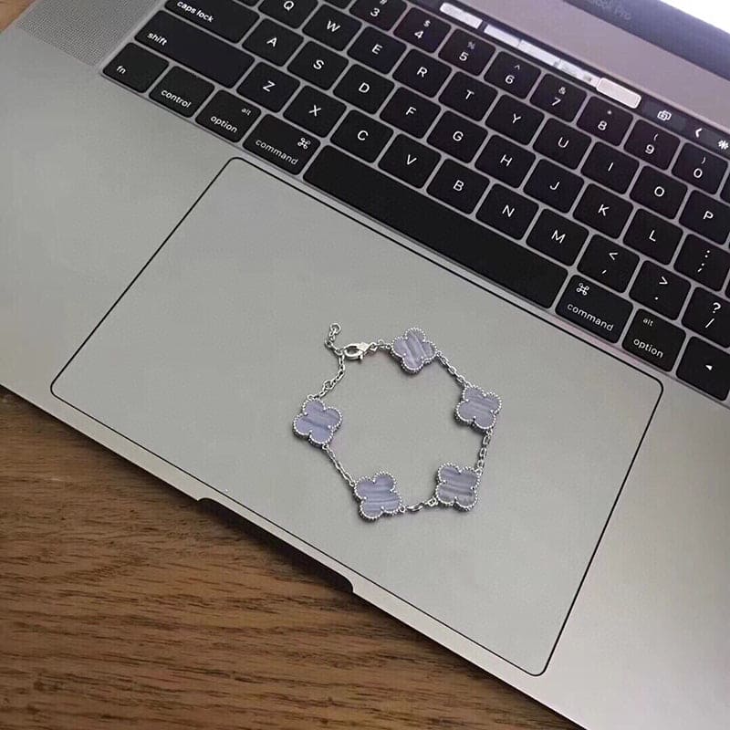 18K Vintage Alhambra Five Motifs Chalcedony Clover Bracelet