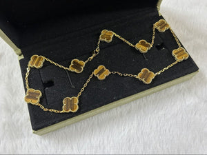 18K Vintage Alhambra Tiger Eye 10 Motifs Necklace