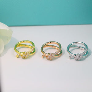 18K Yellow Gold Knot Double Row Diamonds Ring
